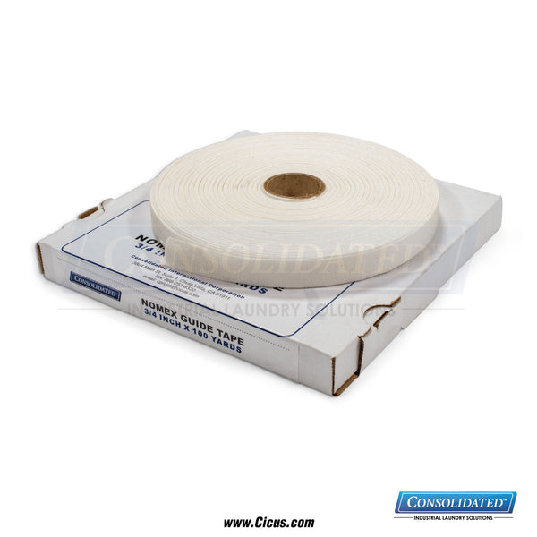 The Nomex Guide Tape Roll is perfect for flatwork ironers in commercial laundry settings, providing exceptional heat resistance and durability. This 3/4-inch wide, 100-yard long tape is designed for precise and efficient ironing, ensuring optimal fabric care and operational productivity.